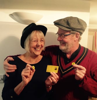 Jane and Derek Williams. Our latest Friends, sporting their badges, membership card ( and very attractive hats too!) Cheers J&D.