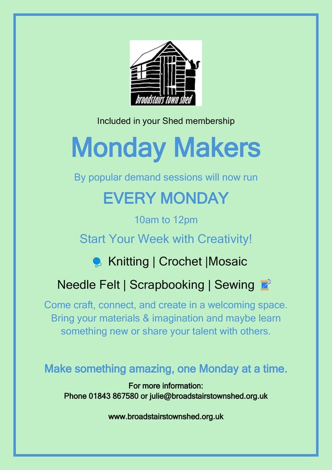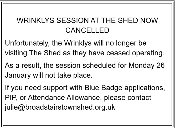 So please have a chat, or drop Julie a line: julie@broadstairstownshed.org.uk