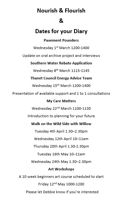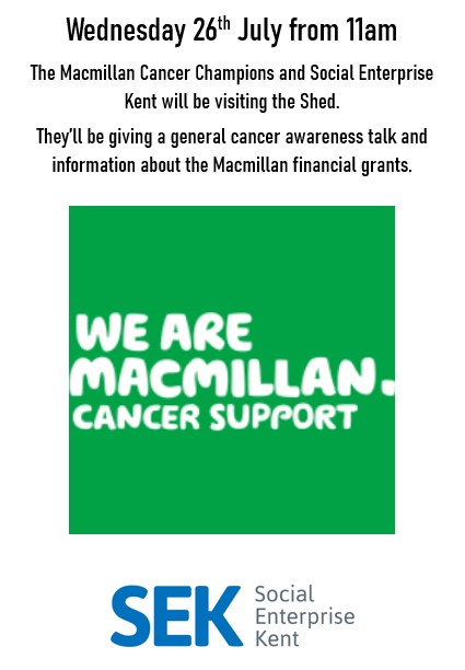 Starting in April, and continuing throughout the summer we have a series of talks, taster sessions and drop-ins hosted at The Shed to provide information, support and signposting to other services that members may need to access, but don't necessarily have easy access to.